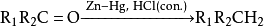 鋅粒與氯化汞在稀鹽酸中反應可以制得鋅汞齊,后者與濃鹽酸、醛或酮一起回流可將醛酮的羰基還原為亞甲基,是為克萊門森還原反應: